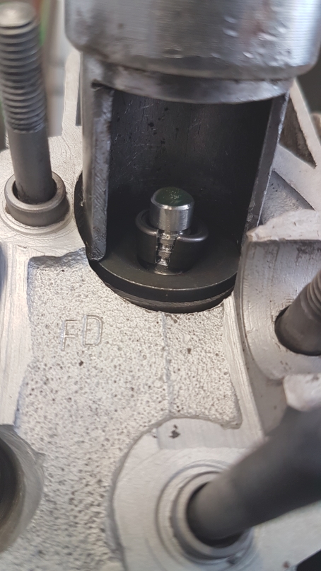 entspannt die Ventilfedern. Die Keile greifen nun in den Ventilteller, stehen aber etwas über. Bis hier hin normal. |